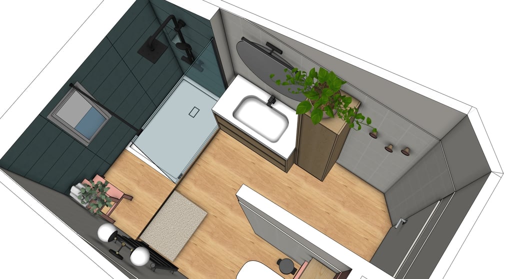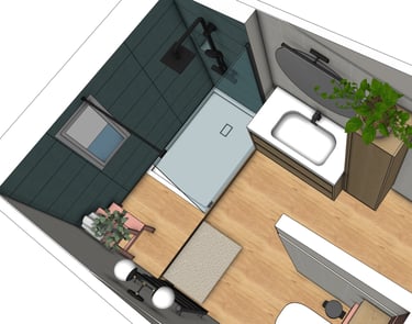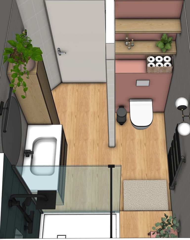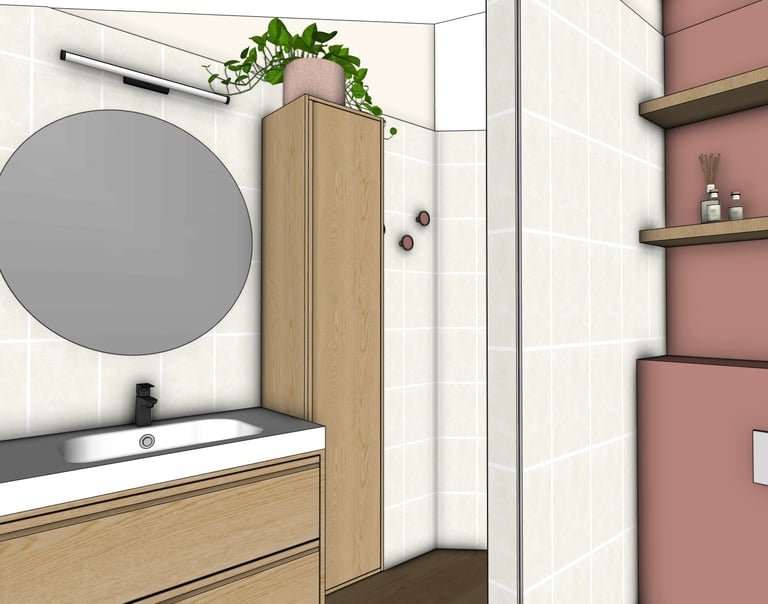 Redonner à cette salle de bain son rôle central dans la maison : un lieu confortable, lumineux et chaleureux, pensé pour le quotidien de toute la famille.