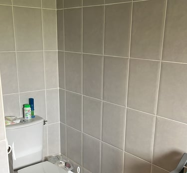 Conserver ce qui fonctionne (carrelage mural gris très clair) pour une harmonie douce et un budget maîtrisé.