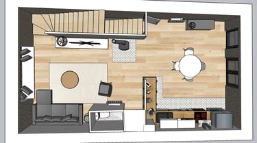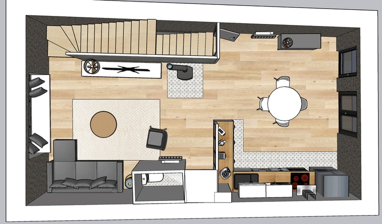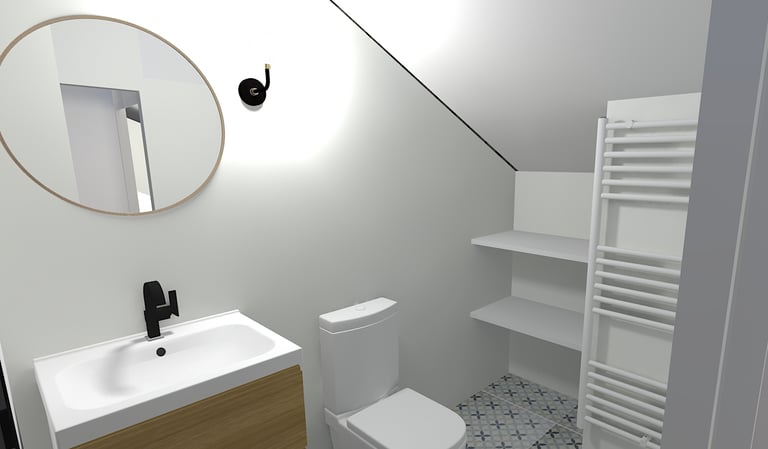 Pour révéler tout le potentiel de cette grange, j’ai étudié plusieurs scénarios avant de définir un projet détaillé et cohérent, étage par étage. Mon rôle a été d’optimiser chaque mètre carré, de favoriser la lumière naturelle et de créer une ambiance familiale à la fois pratique et accueillante.