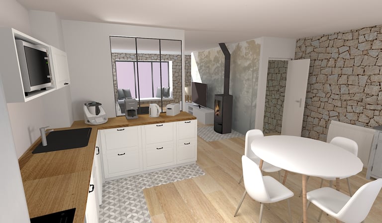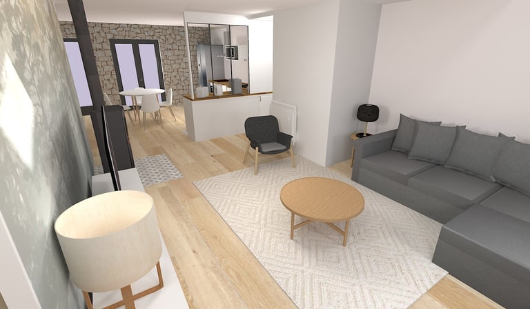 À terme, cette ancienne grange deviendra un refuge chaleureux, un lieu de ressourcement pour mes clients et leurs deux enfants, pensé pour conjuguer confort moderne, authenticité et moments partagés.