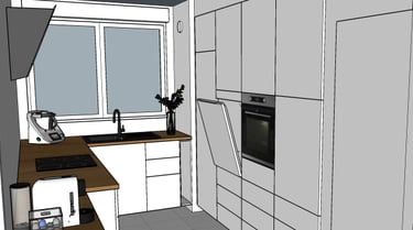 Transformer cette cuisine en un véritable cœur de maison : fonctionnelle, accueillante et agréable à vivre au quotidien, tout en intégrant la chaudière sans que celle-ci ne devienne un frein esthétique.